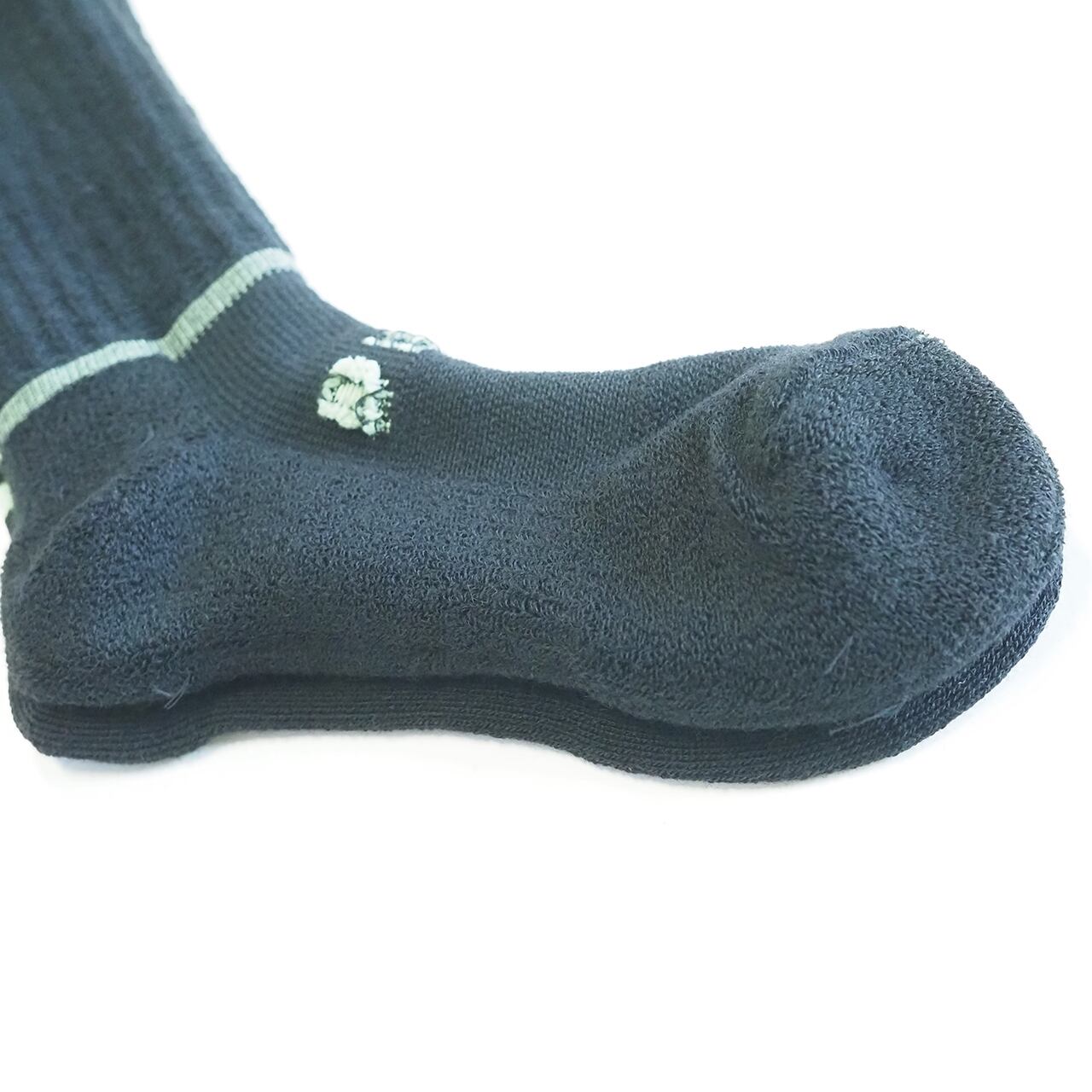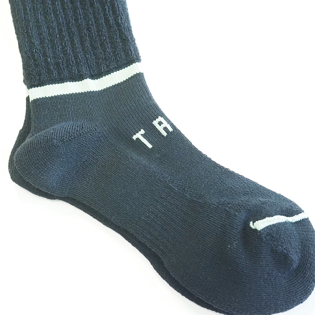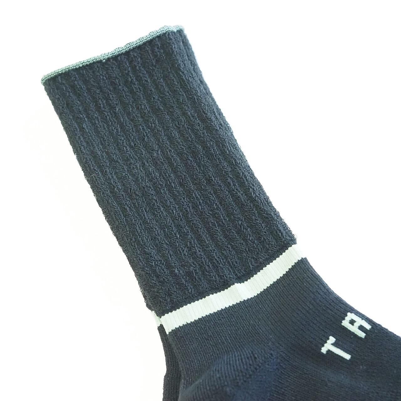 通常のStockSockとは編機を変えて編んでいますので、いつもの縦ラインではなく、足首にぐるっと一周横ラインが入っています。