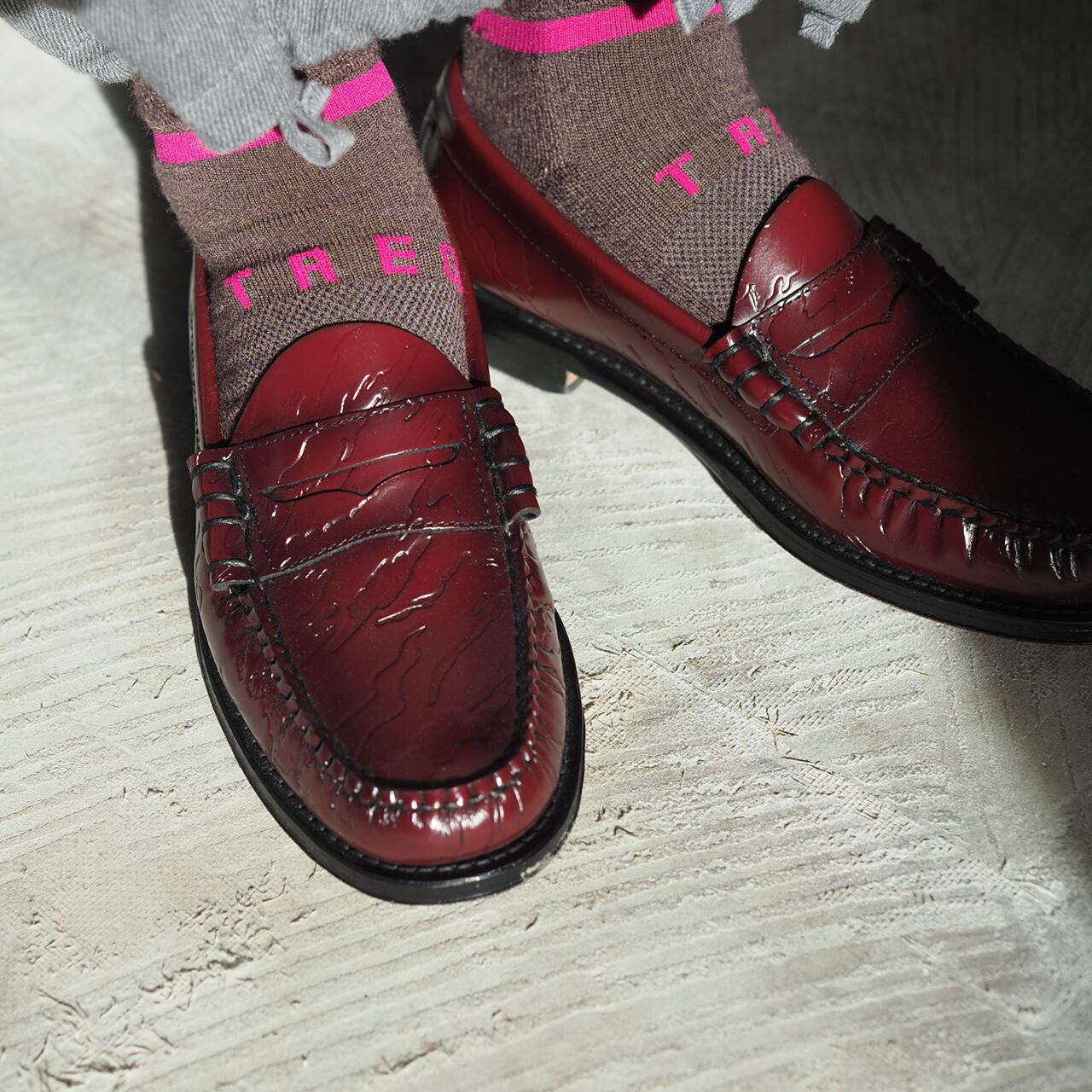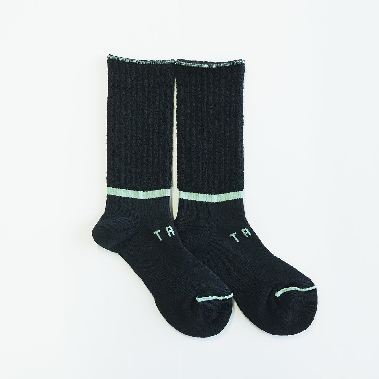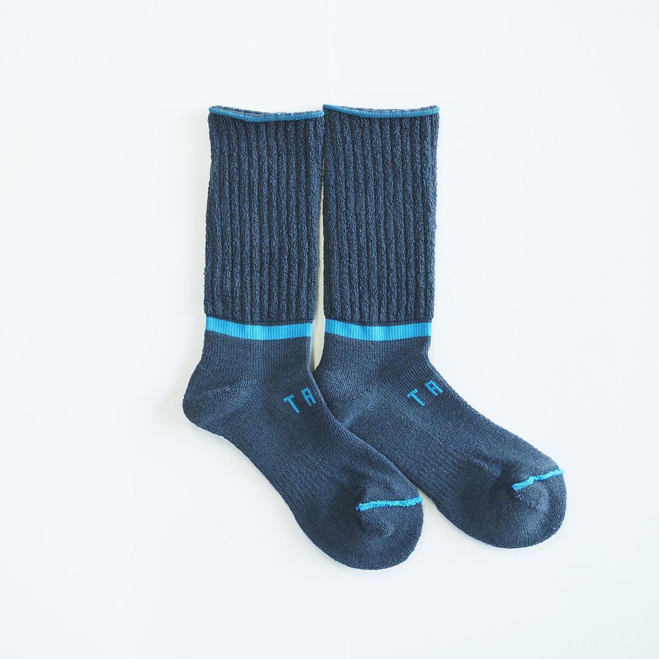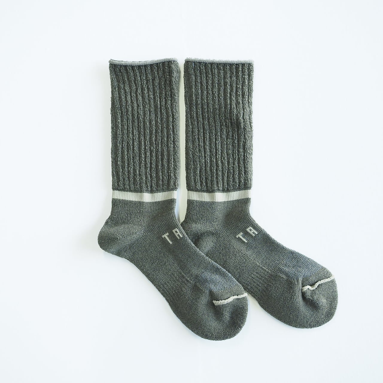 通常のStockSockとは編機を変えて編んでいますので、いつもの縦ラインではなく、足首にぐるっと一周横ラインが入っています。